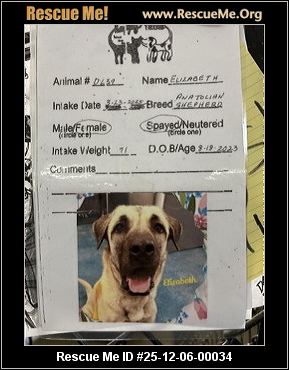 25-12-06-00034D010Elizabeth (f)(female)Anatolian ShepherdWhite County, Monticello, INID: 0639