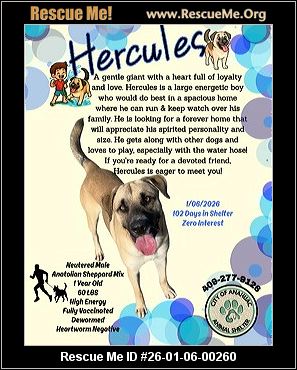 A gentle giant with a heart full of loyalty and love. Hercules is a large dog who would do best in a spacious home